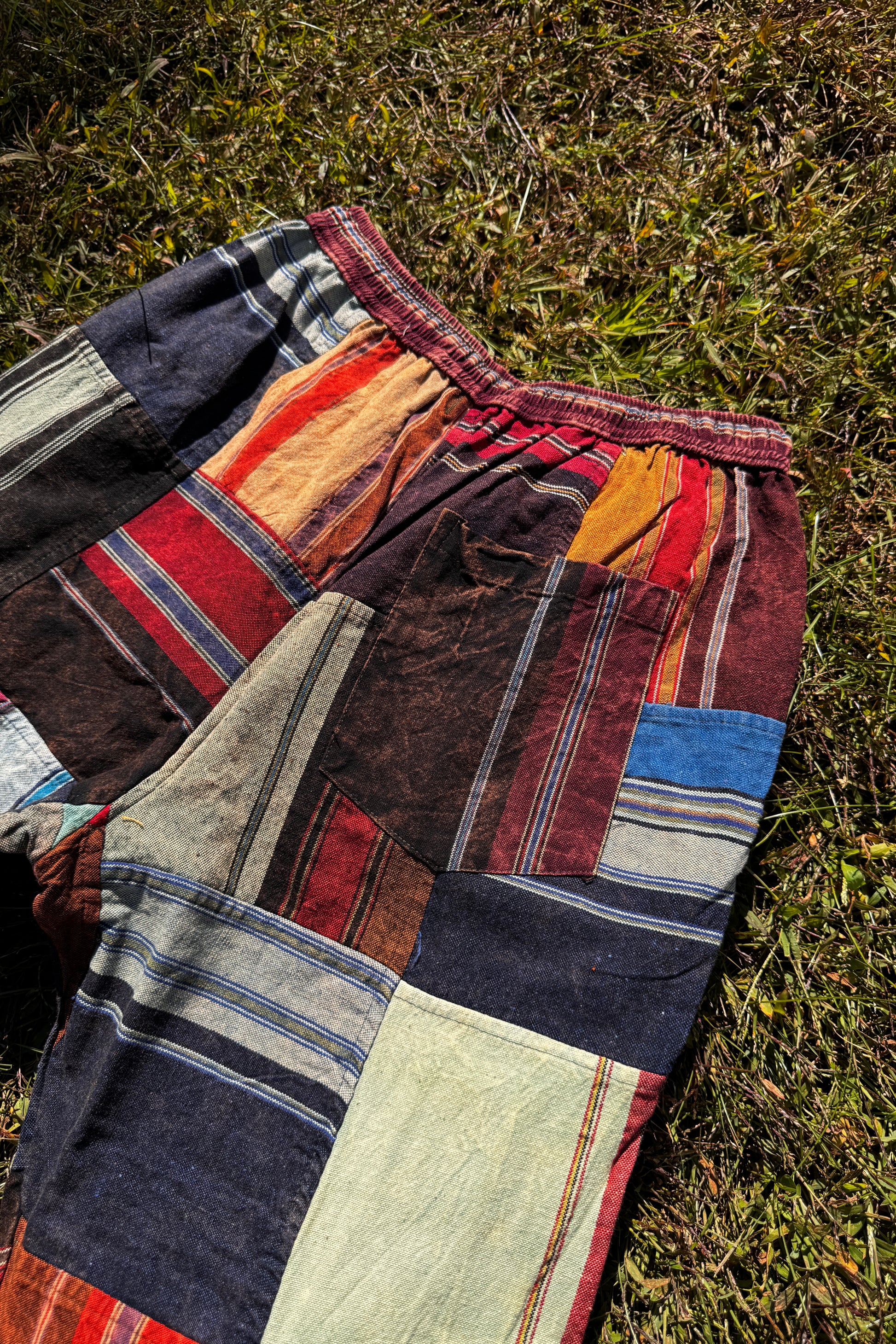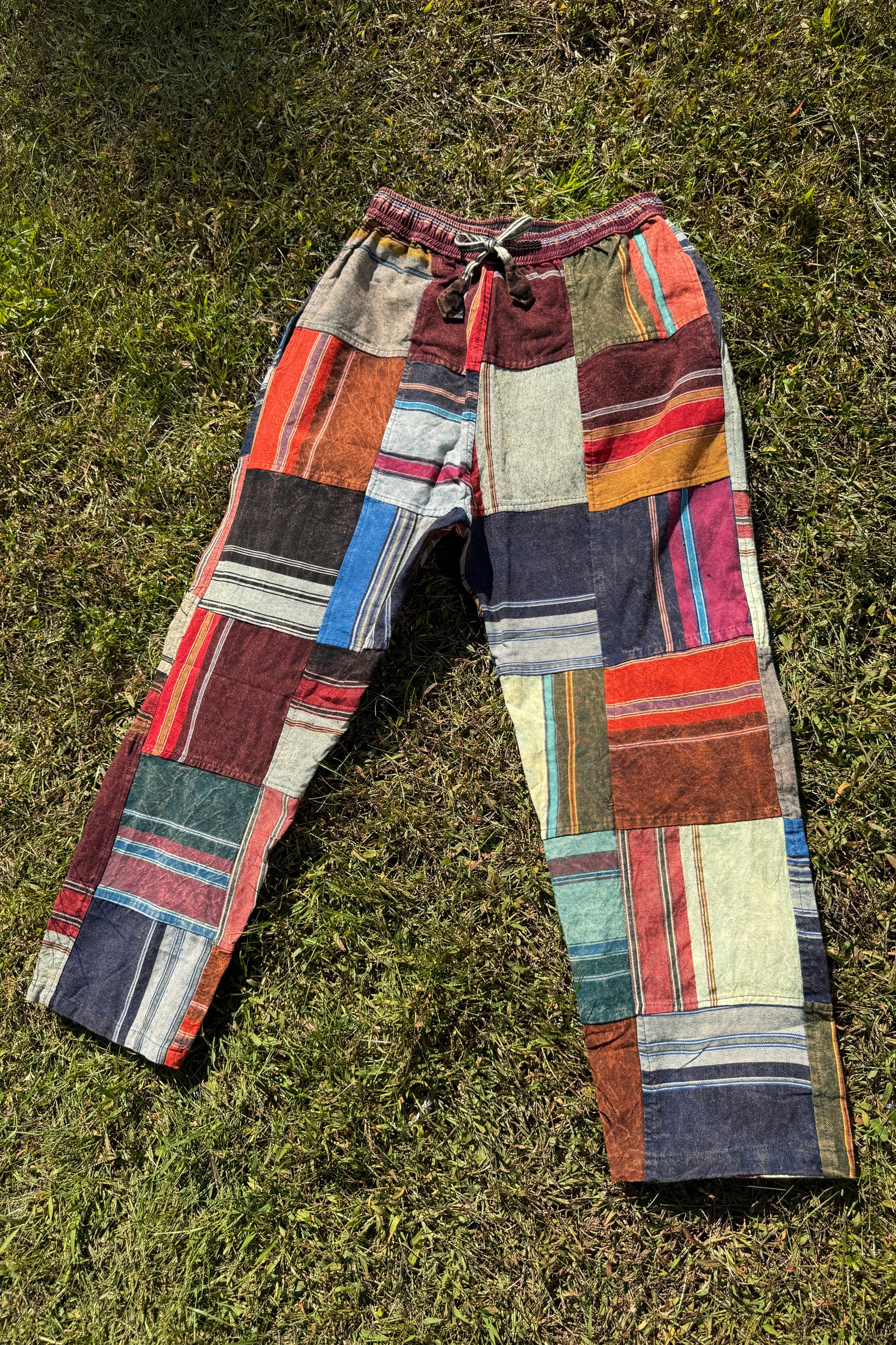 Each pair showcases unique patchwork construction, making your trousers a one-of-a-kind addition to your sustainable wardrobe. Perfect for those who appreciate quality craftsmanship and timeless bohemian style.