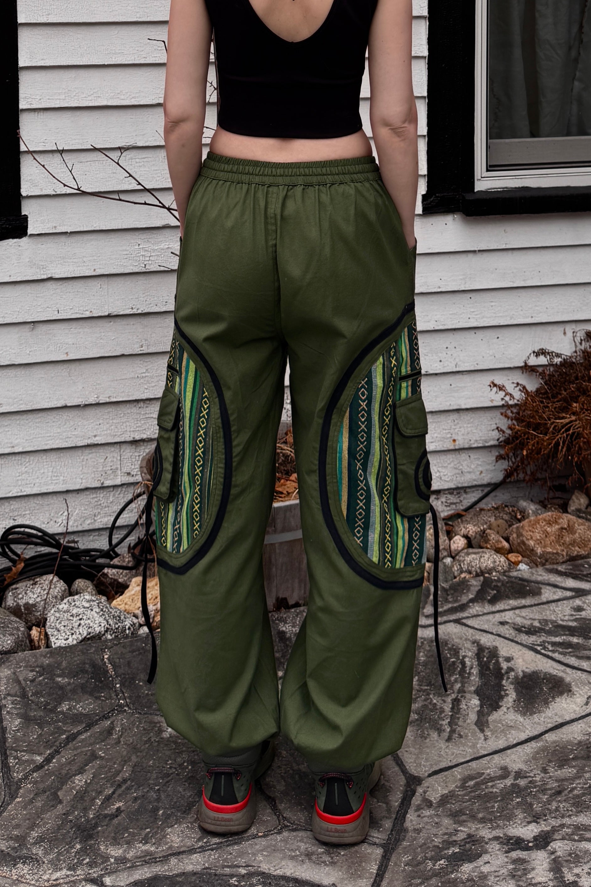 - Cargo and zipper pockets sit on top of the patch panels for a layered, intentional look